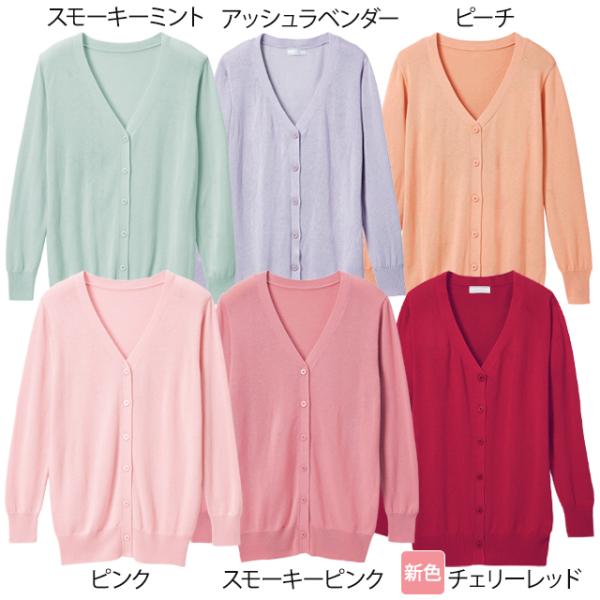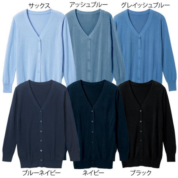 ナースカーディガン 綿混 ナース カーディガン レディース 看護 介護 事務 アンファミエ 自宅で洗える!なめらか綿混Vネックカーディガン(レギュラー丈)