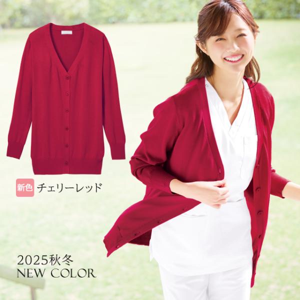 ナースカーディガン 看護師 白衣 医療 介護 事務 受付 レディース アンファミエ 自宅で洗える!なめらか綿混Vネックカーディガン(ロング丈)