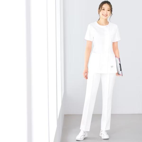 ナース服 レディース 白衣 ジャケット 医療用 ユニフォーム アンファミエ [ナチュラルビューティー]美ライン袖パイピング前開きジャケット