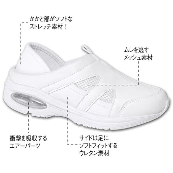 ナースシューズ 白 黒 エアー 疲れにくい スニーカー スリッポン 静音 軽量 保育士 介護士 靴 アンファミエ 帯電防止2WAYエアーナースシューズ(低反発中敷付き)