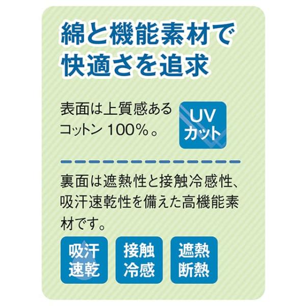 裏面は遮熱性と接触冷感性、吸汗速乾性を備えた高機能素材です。