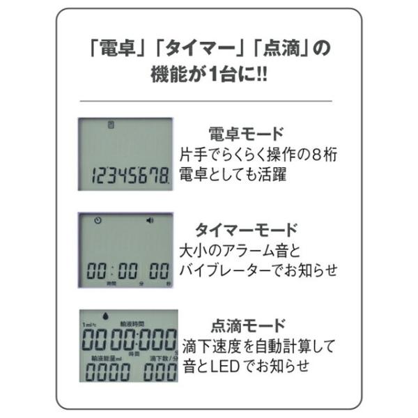 『点滴モード』/『電卓モード』/『タイマーモード』/『時計・カレンダーモード』