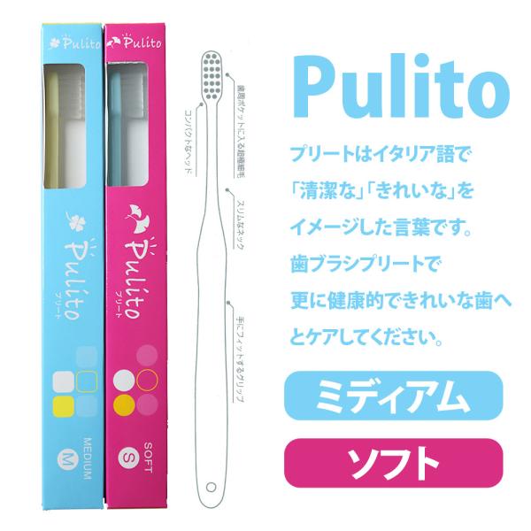4/17-19限定!5%OFFクーポン!歯ブラシ 大人用 Pulitoプリート 4色アソート 12本入り メール便可 1セットまで メール便送料無料 即発送