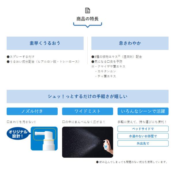 お口の中にうるおいを与えることで口中を浄化し、口臭を予防する口腔用スプレーです。