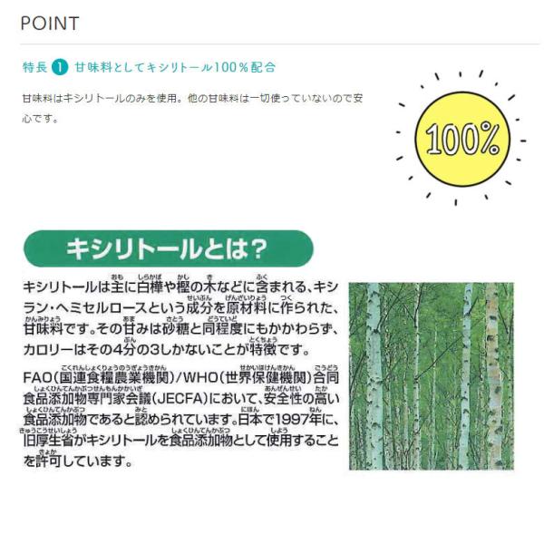 甘味料としてキシリトールを100%使用。そのほか、歯科専用だけの優れた特長があり、歯科医院でおすすめしやすくなっています。