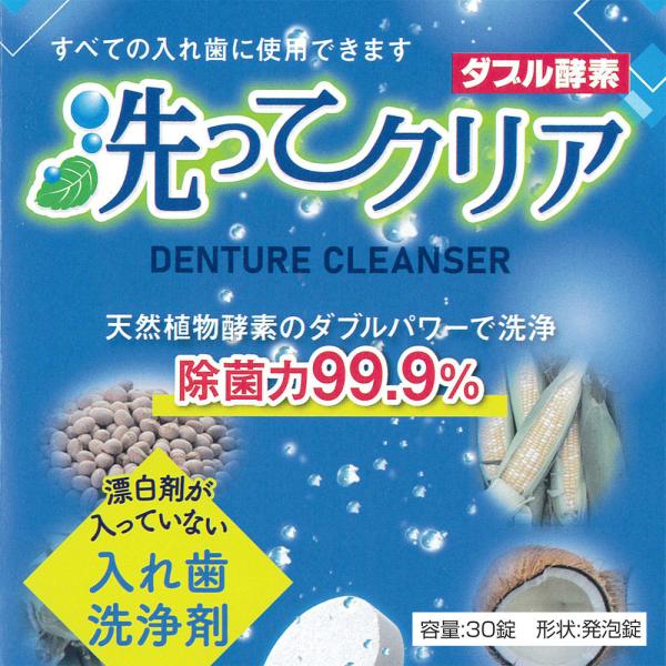 東伸洋行 入れ歯洗浄剤 洗ってクリア ダブル酵素 30錠入 1箱 メール便不可 即発送