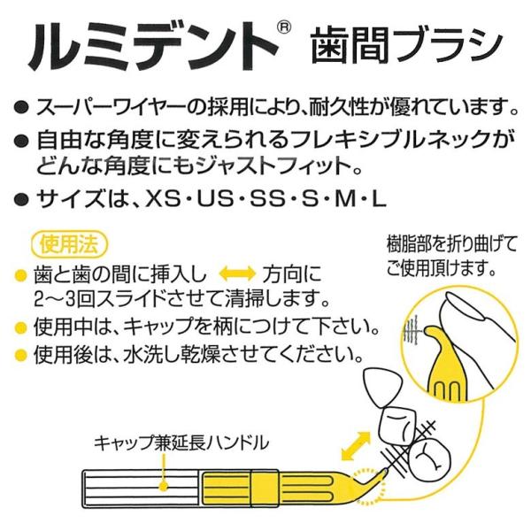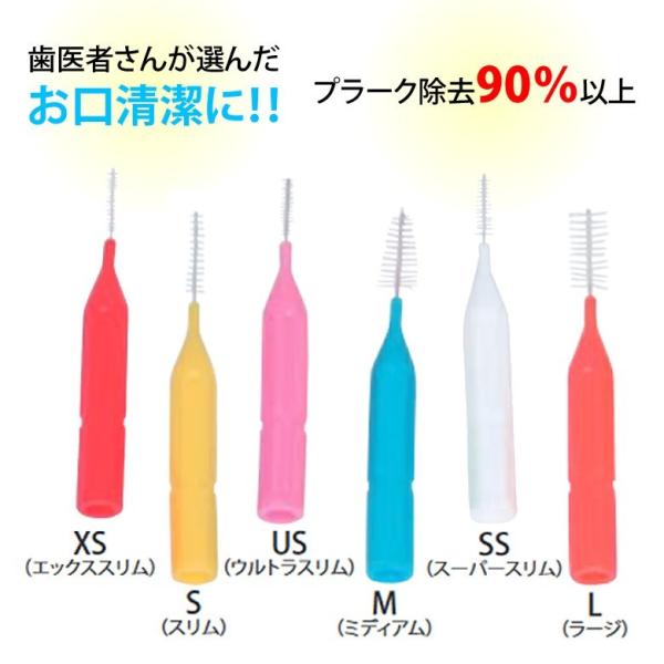 歯の隙間に合わせて選べる6サイズ(XS・US・SS・S・M・L)。