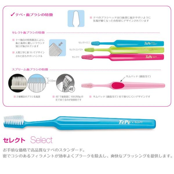 歯ブラシ TePe テペ セレクト 10本 面白いデザイン メール便可 2セットまで メール便送料無料 即発送
