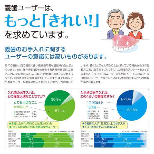 研磨剤無配合で、デンチャー(入れ歯)を傷つけにくい洗浄剤です。