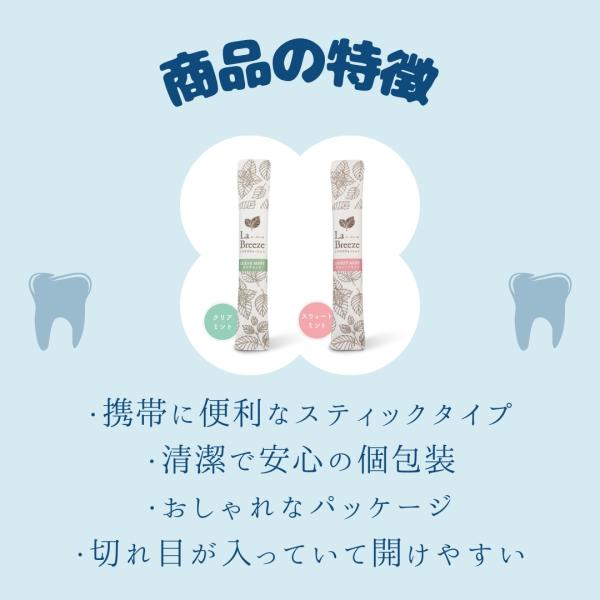 クリアミントとスウィートミントの爽快なミントの香りを2種類ご用意しており、クリアで爽やかな息をサポートします。