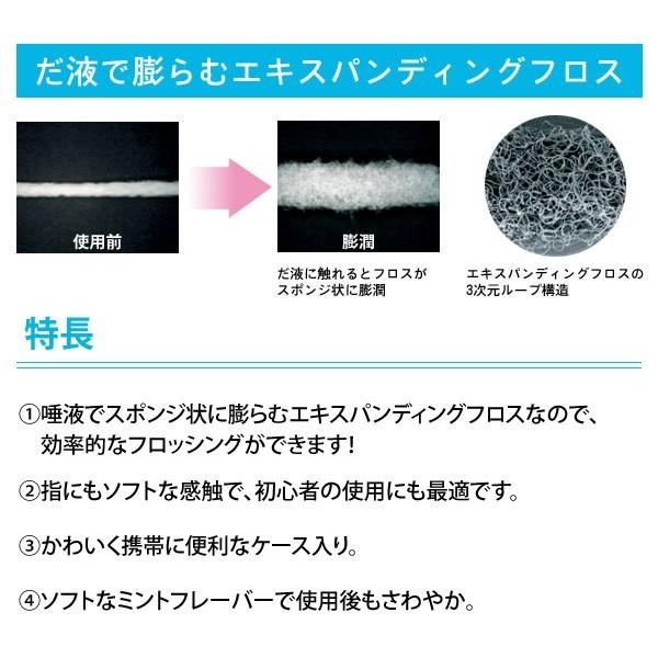 だ液でスポンジ状に膨らむエキスパンディングフロス採用。