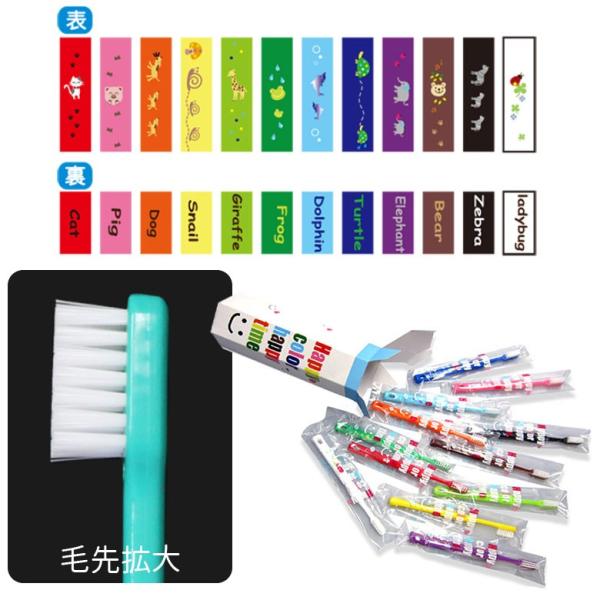 色えんぴつと同じ12色の歯ブラシセットです。表は可愛い動物プリント、裏面は動物の名前が英語でプリントされています。毎日の歯磨きが楽しくなります★ご自宅用はもちろん、共同購入やギフトにも喜ばれます。