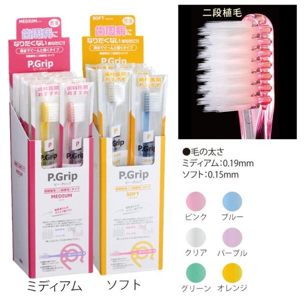 歯ブラシ PDR ピーグリップ 二段植毛 キャップなし 12本 メール便可 3セットまで 即発送