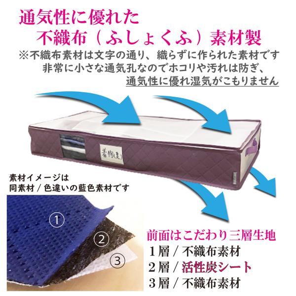 着物 収納ケース 約3枚用 通気性抜群 不織布製 活性炭シート入
