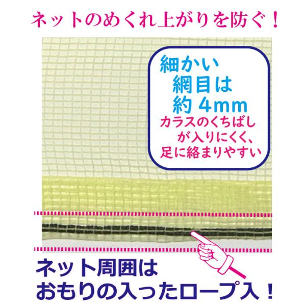 ・約4mmの細かい網目でカラスのくちばしが入りにくく、足に絡まりやすい