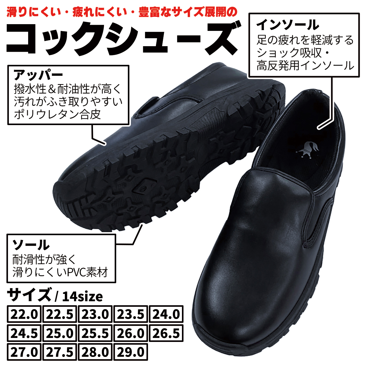コックシューズ 黒 2E 滑りにくい キッチン ホール 厨房靴 軽量 抗菌 防臭 撥水 疲れにくい 断熱 業務用 ユニフォーム レディース メンズ 男女兼用 宅配のみ