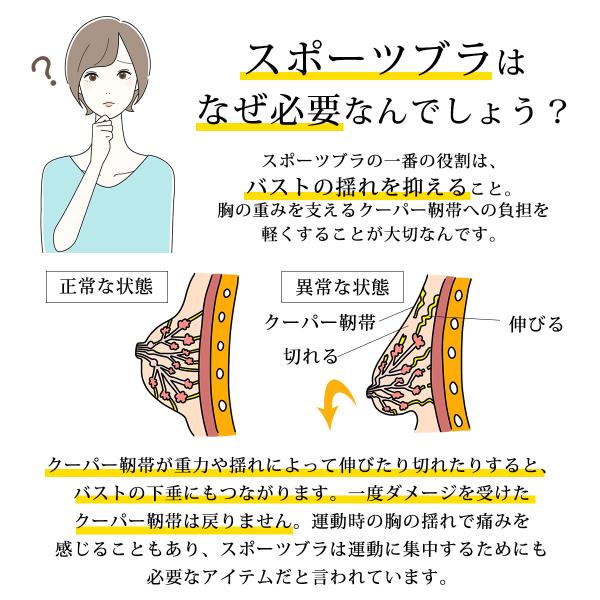 胸の揺れを最小限にし、バストのハリを保つクーパー靭帯が伸びたり切れたりしないよう防ぎます。