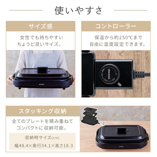 ホットプレート 焼肉 焼肉プレート 大型 たこ焼き器 焼肉 たこ焼き 減煙 油が落ちる 穴あき プレート3種 蓋つき たこ焼きプレート IHA-A30-B アイリスオーヤマ