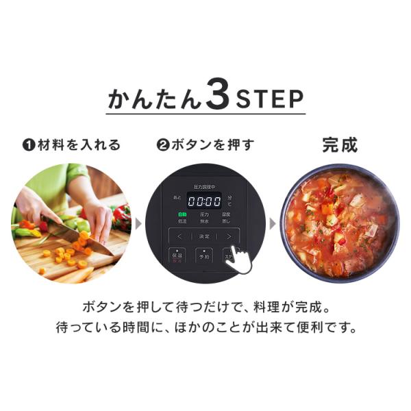 [検索用:電気圧力鍋 3L 圧力調理 圧力鍋 煮物 無水調理 蒸し 低温調理 発酵 炊飯 調理 料理 レシピブック付き 4967576645812 4967576645829 ]