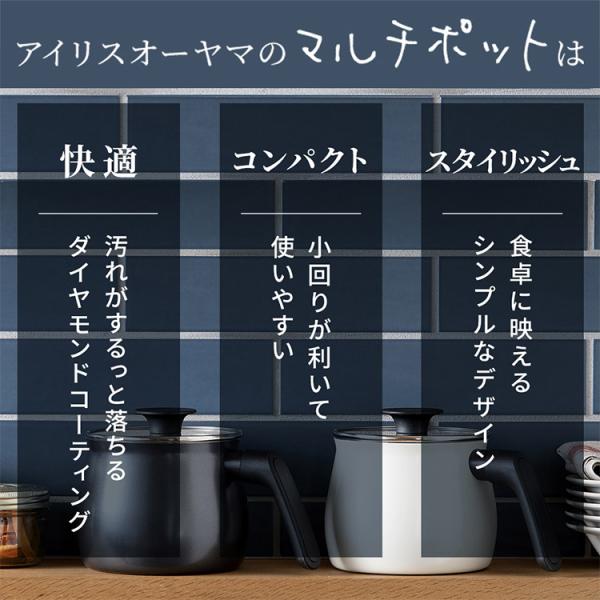 片手鍋 鍋 マルチポット 2.2L おしゃれ ih ih対応 ガス ガス火 IH IH対応 新生活 一人暮らし ダイヤモンドコート MCP-14 アイリスオーヤマ おすすめ