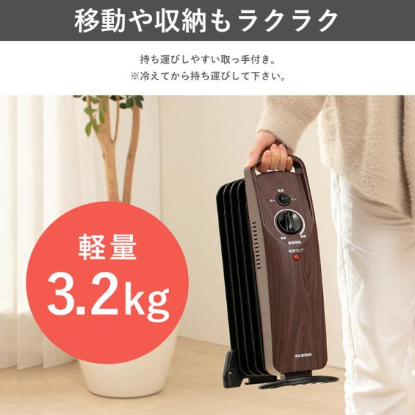 小型で置く場所を取らない、移動が楽ちんなミニオイルヒーターです。