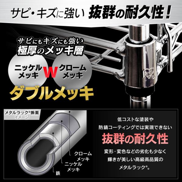 ポール直径25mmで軽量タイプ、クロームメッキ仕上げのメタルシェルフです。