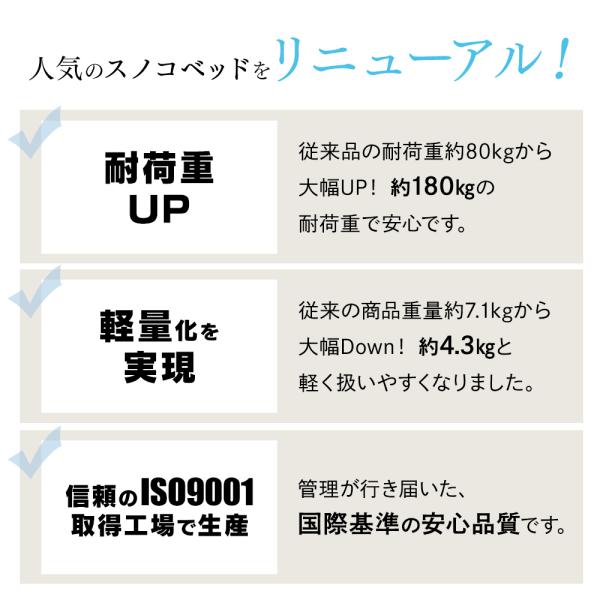 従来品の耐荷重約80kgから大幅UP!約180kgの耐荷重で安心です。