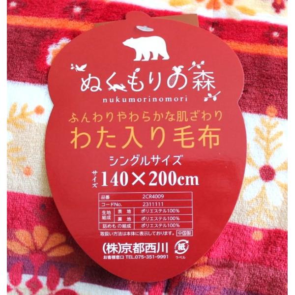 商品名:京都西川 ふんわりやわらかわた入り毛布(ぬくもりの森)シングルサイズ