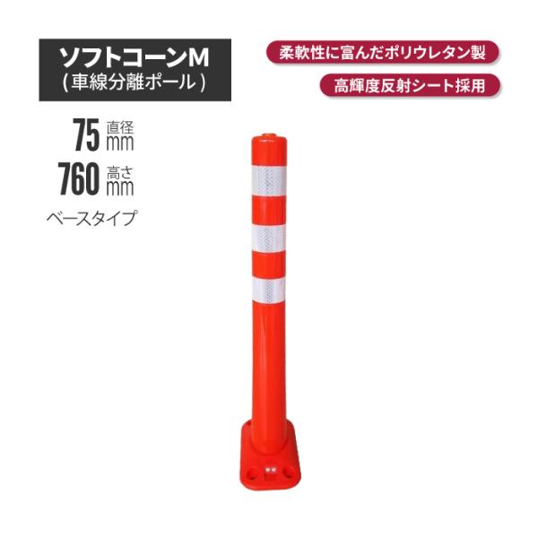 サンセルフ ソフトコーン 760mm ベースタイプ オレンジ ポール 駐車場 赤 白 用品 ポスト ガイド 安全 保安 ガード 車線 分 爆買