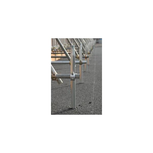 先の尖ったくい丸は作業性が良く、くい打ちに掛かる人件費を削減することが出来ます。 作業性は足場管を打ち込む場合に比べておよそ2倍。また、再利用することができますので杭に掛かるコストを削減できます。 使えば使うほどコスト削減が可能なくい丸は、仮設用途やイベント用途、リース資材として特に有効です。