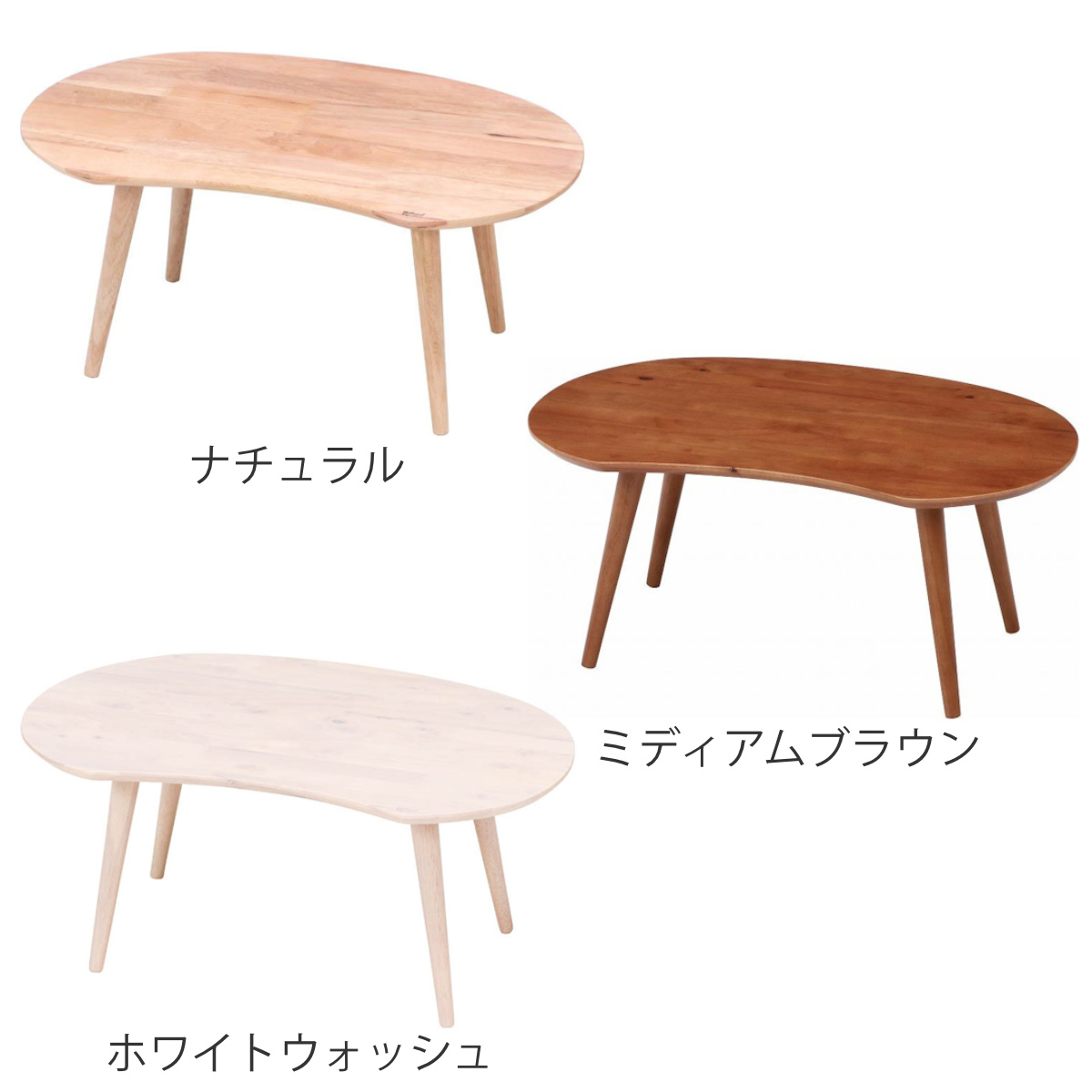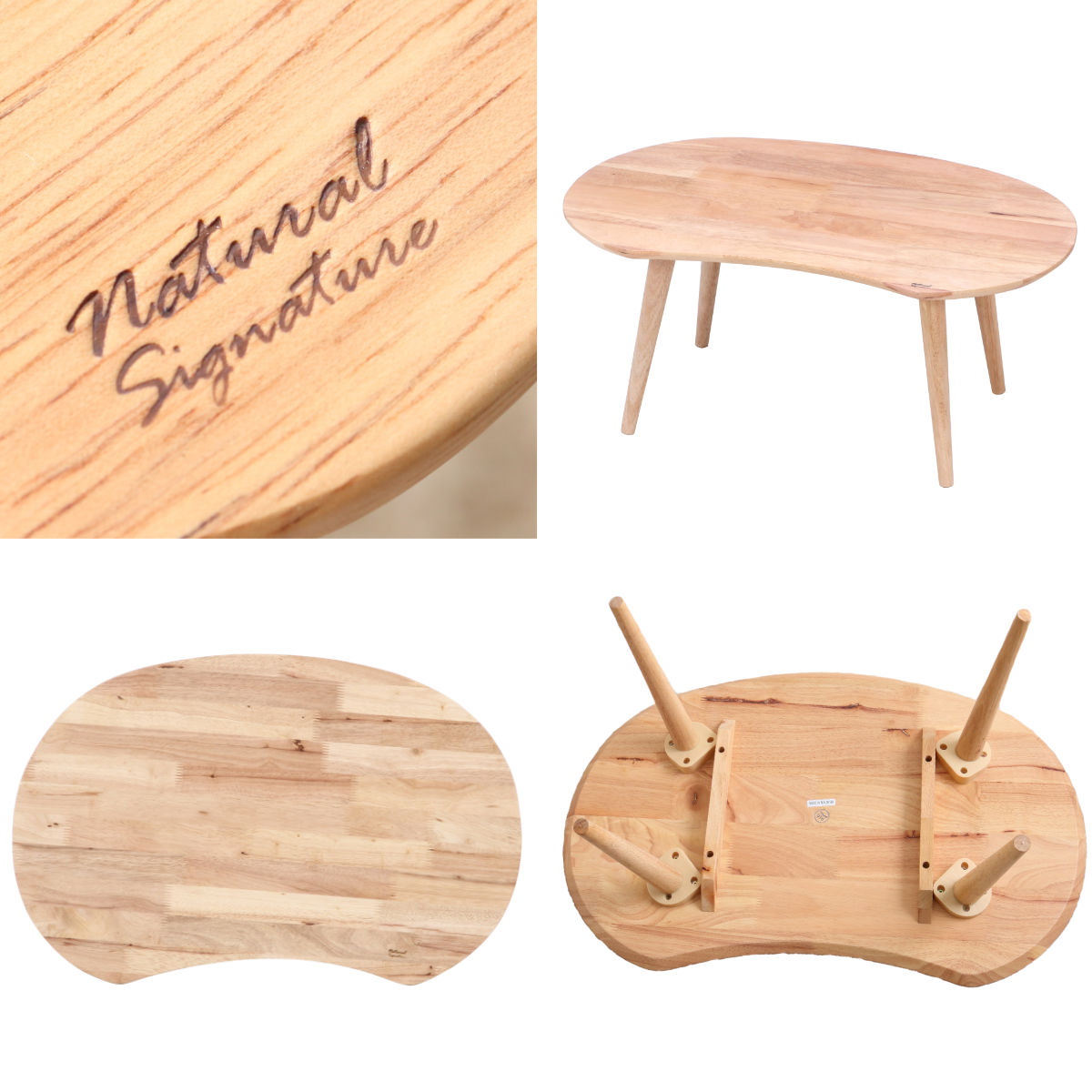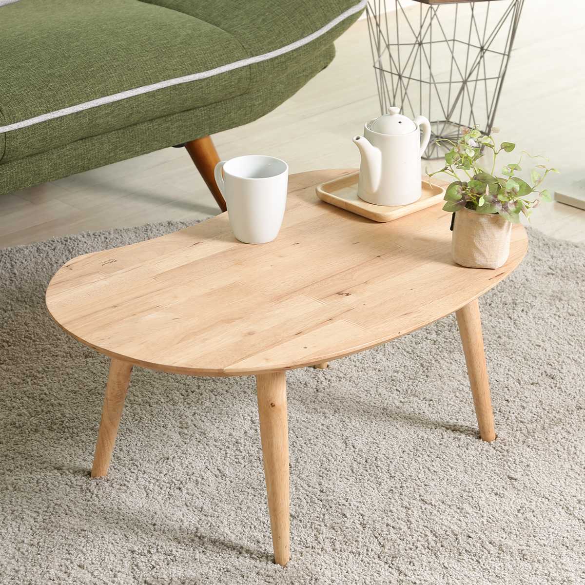 天然木の温もり感じるそら豆型ローテーブル