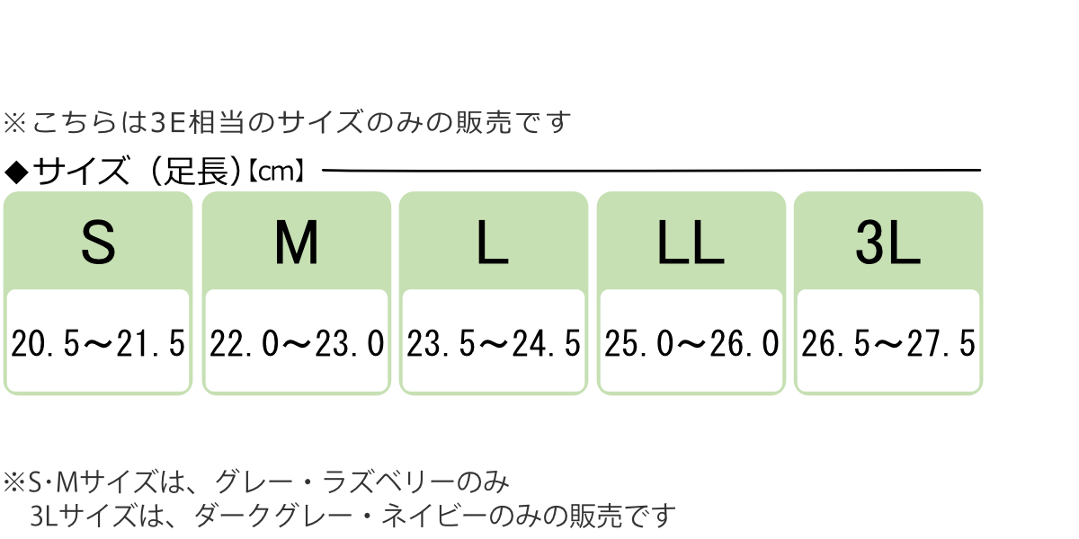 ●足囲・足幅がゆったりした3E相当の幅広サイズです。