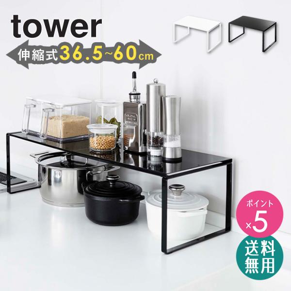 伸縮収納棚 tower タワー 山崎実業 公式 yamazaki シンク下 キッチン収納 コの字 ラック キッチンラック 鍋 調味料 整理棚 3865 3866 爆買