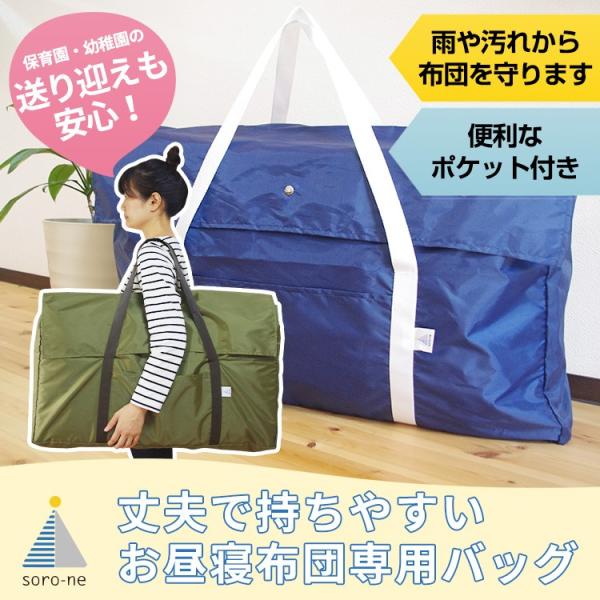 お昼寝布団バッグ お昼寝布団袋 丈夫 ポリエステル100% 肩掛け 持ちやすい ネイビー