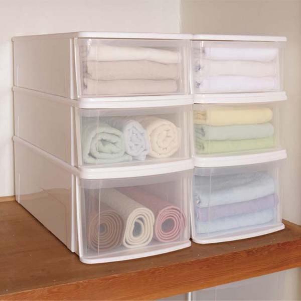中身が見えるクリアタイプで、シーンを選ばず使えるシンプルなチェストです。