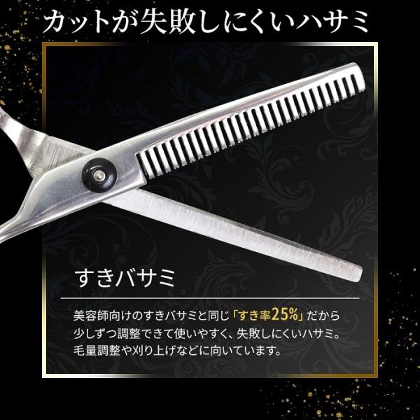 カットハサミと違い切りすぎの失敗を少なくし初心者の方でも本格的なカットを楽しめます。
