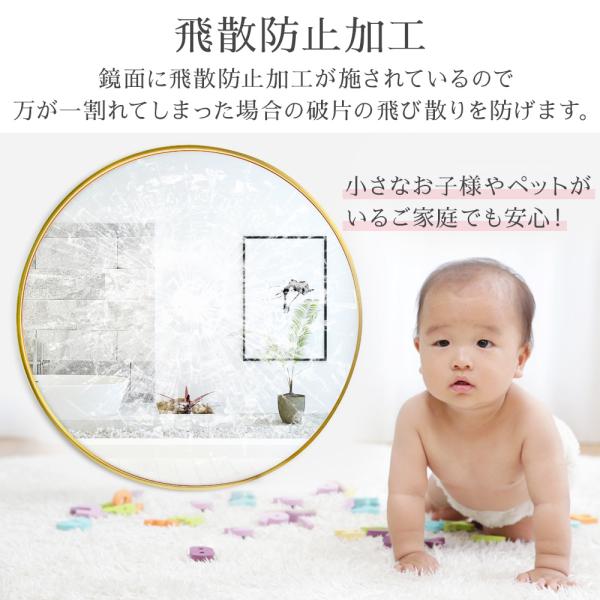 鏡 壁掛け ミラー 飛散防止 ウォールミラー 40cm 壁掛け 丸型 姿見 姿見鏡 全身 おしゃれ 洗面所 アンティーク ミラー インテリア