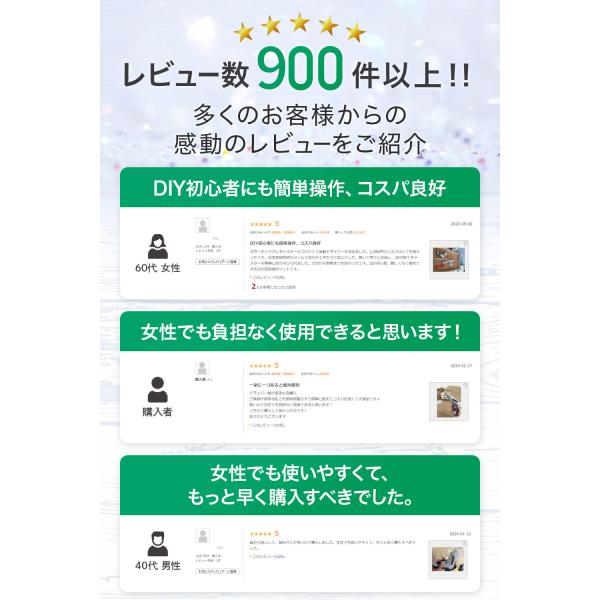 女性にもストレスなく長時間使用できる軽量設計。電源コード不要で、自由に動きながら作業できます。
