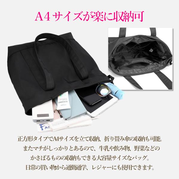 ナイロン トートバッグ 軽量 レディース バッグ A4 ショルダー 2way メンズ 大きめ 肩掛け 通勤 通学 斜めがけ ファスナー付き 大容量