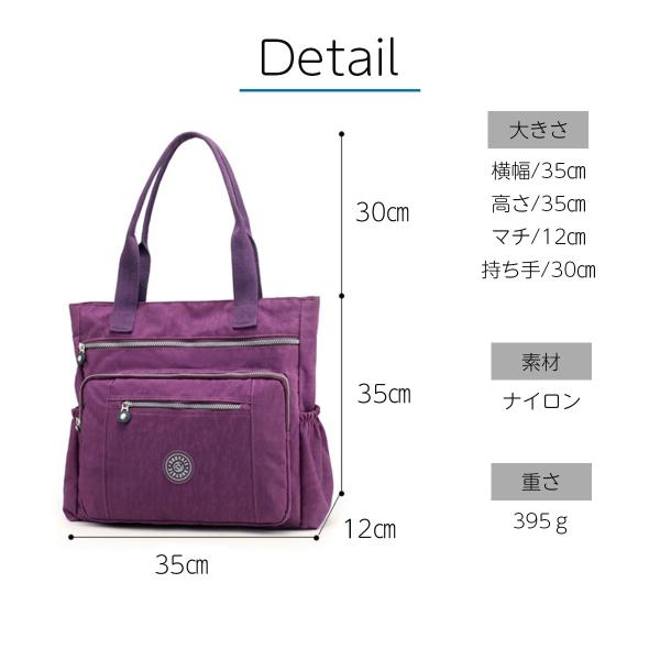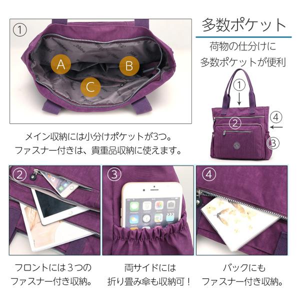 トートバッグ レディース ナイロン 大容量 大きめ a4 軽量 ポケット多い ファスナー付き 通勤 通学 肩掛け おしゃれ
