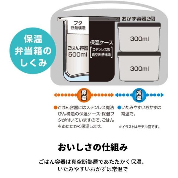 ・ごはん容器は真空断熱層であたたかく保温、いたみやすいおかずは常温で。