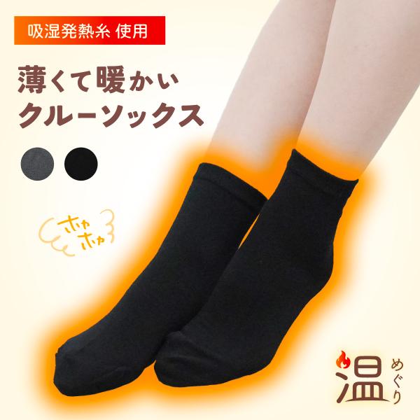靴下 レディース クルー 発熱 薄手 インナー ソックス 重ね履き 重ね着 暖かい 薄い あったかい かわいい 黒 ブラック グレー 防寒 冷え性 温活 人気 売れ筋
