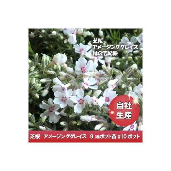 芝桜10ポット アメージンググレイス(9cmポット苗)花色:白/中央部赤