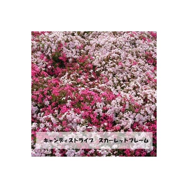 芝桜40ポット1.6m2分相当 キャンディストライプタマノナガレという名で流通しており、真っ白な花にピンクのストライプが入った品種です!どの花も少しずつ違うラインがステキ♪