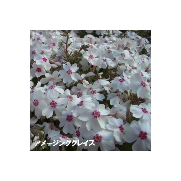芝桜40ポット アメージンググレイス(9cmポット苗)花色:白/中央部赤