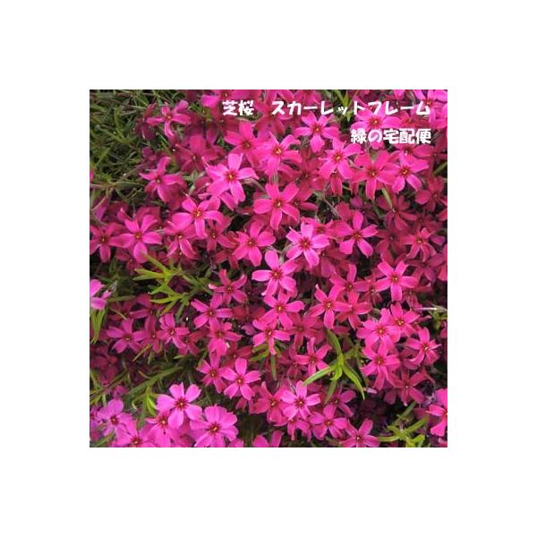 芝桜10ポットセット 1列2m分相当 スカーレットフレーム赤色といったらこの色です!華やかな赤花の品種濃いピンクにも見えます。小ぶりな花も特徴一般的な芝桜公園で見られる赤花品種植え付け間隔:20cm