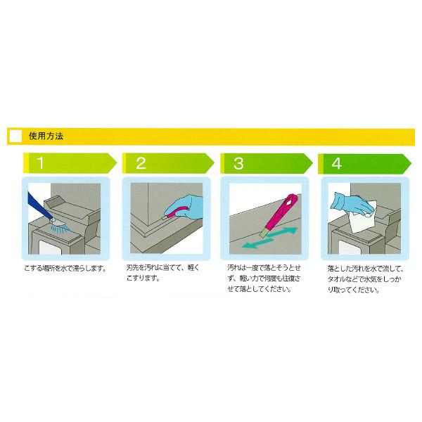 ・特殊なガラス繊維と樹脂の刃で、汚れた場所を水で濡らして軽くこするだけで汚れを落とします。薬品を使わないので、養生など面倒な準備が必要なく、お墓にシミが残りません。手のひらに収まるサイズ。お墓参りの際に収納場所にも困りません。また、先端の刃が半円状と、花立や水入れ、香炉などの曲面にも使いやすい形状です。