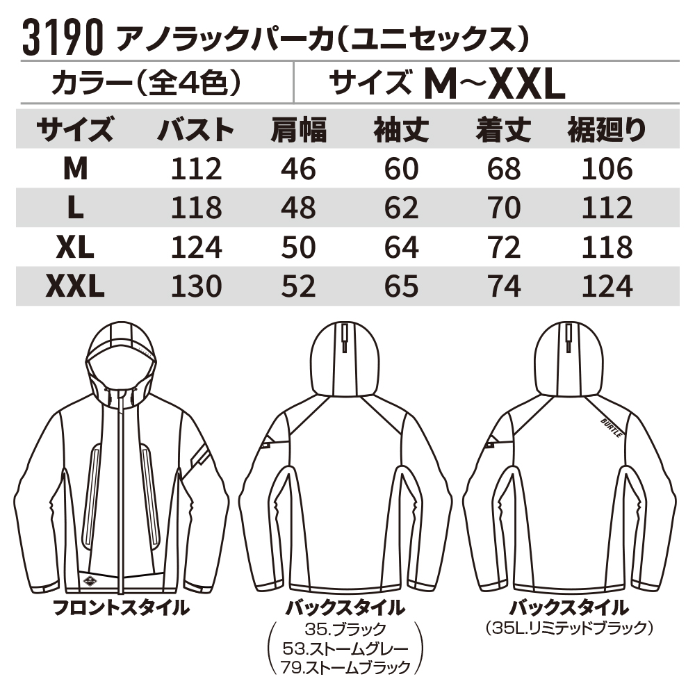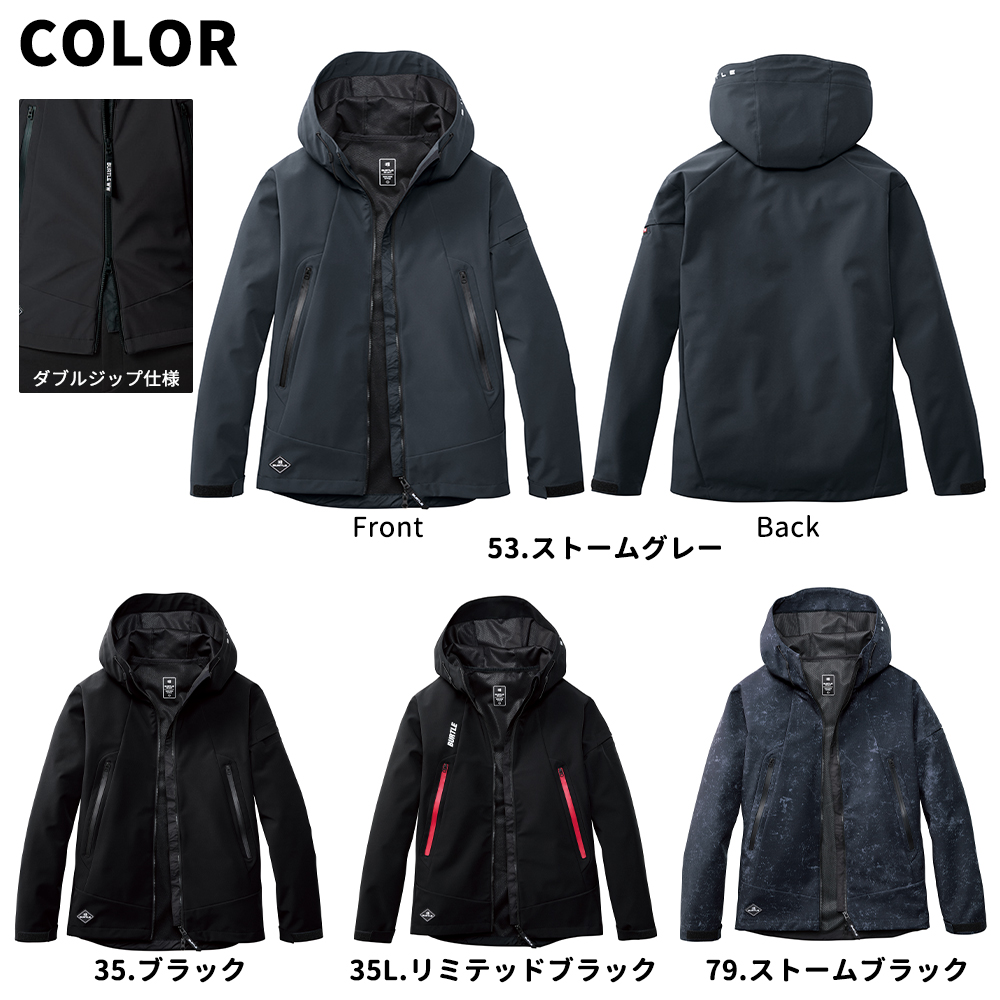 BURTLE バートル 防風フーディージャケット ユニセックス ストレッチ ダブルジップ 25-26秋冬 長袖 防風 防寒着 保温 作業服 作業着 アウトドア 3190 宅配のみ