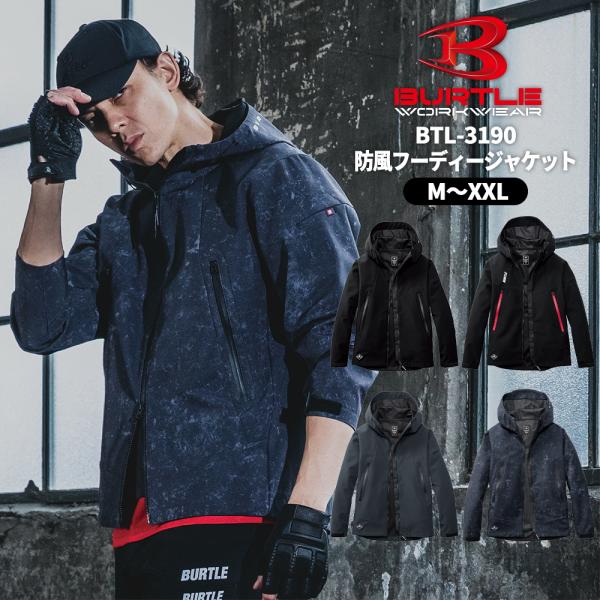 BURTLE バートル 防風フーディージャケット ユニセックス ストレッチ ダブルジップ 25-26秋冬 長袖 防風 防寒着 保温 作業服 作業着 アウトドア 3190 宅配のみ
