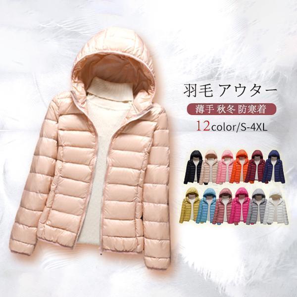 ダウンジャケット レディース 軽量 ライトダウン インナージャケット 羽毛 アウター 持ち運び 薄手 シンプル 秋冬 暖かい 防寒着